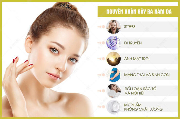 Sau khi sinh con, làn da của các chị em bắt đầu lão hóa. Làm cho làn da không cung cấp đủ nước để hòa tan các sắc tố melanin, khiến cho chúng tích tụ lại từng đám. Từ đó hình thành nên vết nám, gây sạm da tối màu.